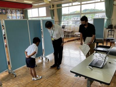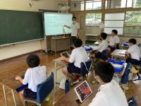 1年生にとって、初めてのタブレットを使っての学習を行いました。