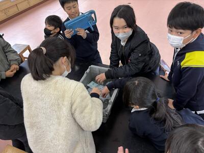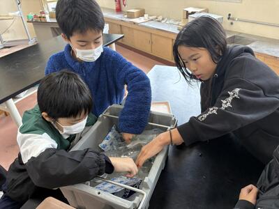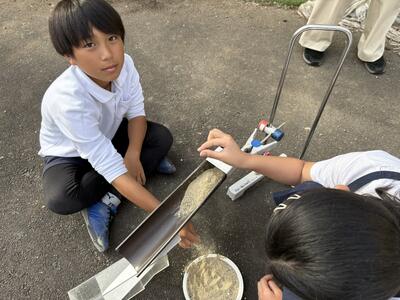 地層見学や教科等で学びました。そのことを実感するために実験をした様子です。