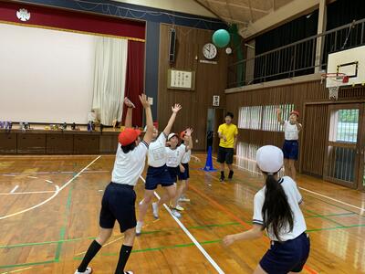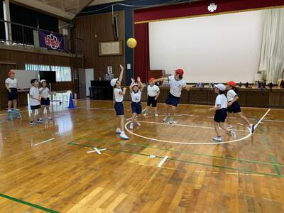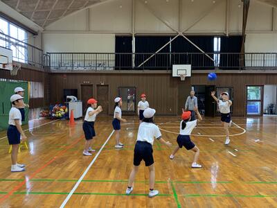 4年生は、体育の授業で雨のため水泳が中止になったため、ポートボールを実施しました。