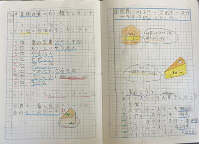 もうそろそろ夏休みですね!夏休みに食べたいものランキングというワクワクするテーマでイラストを交えながら書いてきた子もいました!