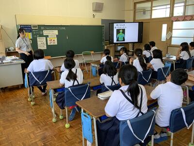 栄養教諭の問いかけにバンバン答える4年生。