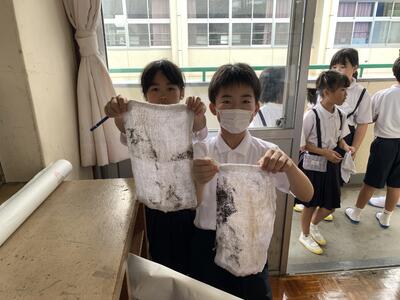 真っ白な雑巾が真っ黒になっていました。素晴らしい!