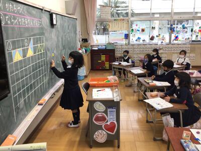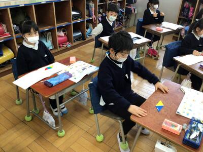 1年生は,算数の授業で「かたちづくり」を行なっています.