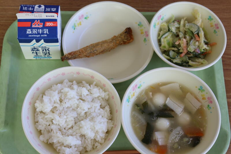 令和8年(2026年)初給食! 1月9日(金) 投稿日時 : 01/09 投稿者6 9日(金)の献立 『麦ごはん・具雑煮・ししゃもフライ・野菜の梅マヨ和え・牛乳』です。 今年も『おいしい給食』期待しています。(^^♪