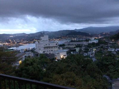 津森小学校修学旅行団、みんな元気に先程、午後5:45に稲佐山観光ホテルに入りました。