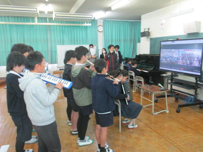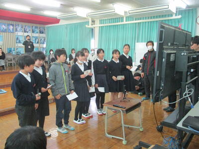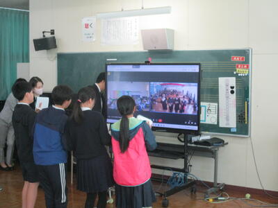 12日(火)に津森小の5年生と台湾大甲区の大甲國民小5年生がオンライン交流を行いました。最初に英語で自己紹介や学校紹介、日本の四季を紹介したあとに、それぞれリコーダー演奏と合奏を発表し合いました。最初は緊張気味の子どもたちも、質問タイムの頃になると緊張もほぐれ和やかな雰囲気になり、最後は両校の子どもたちが一緒に「Proud of you」という英語の歌を合唱して笑顔で交流を終えることができました。また、次回の開催が楽しみですね。