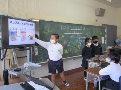 4年生は授業参観で総合的な学習の時間に調べたことを発表しました。
