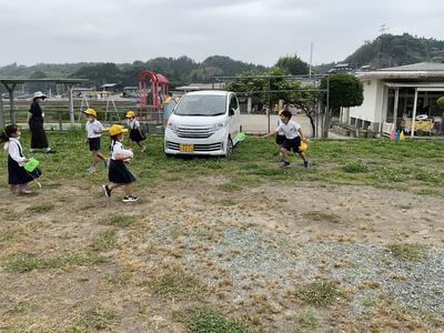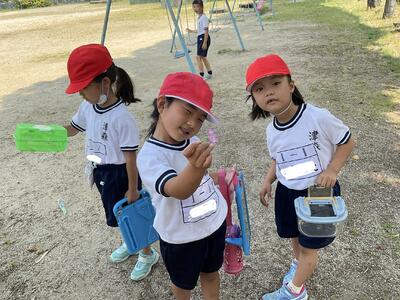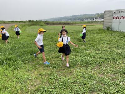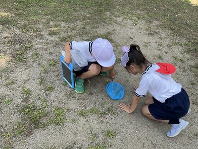 グラウンドよりは虫が多かったです.虫が苦手な子は、草花を集め、虫が好きな子はひたすら虫を追いかけ回していました.それぞれの子どもたちの姿が見えた時間でした!