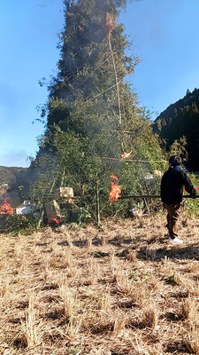 パチパチと竹のはじける音とともに、てっぺんまで見事に燃え上がりました。
