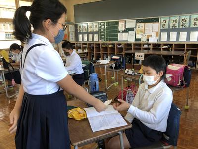 【5年生】ありがとうの木 投稿日時 : 2020/10/08 作成者1 5年生では、お互いに感謝し、感謝されることを通して、相互理解、相互承認を進めていくために、ありがとうの木に取り組んでいます。 毎日の帰りの会で、誰かが誰かに感謝の気持ちを伝えることで、気持ちよく笑顔で下校しています。