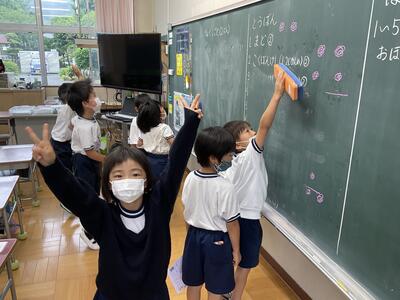 初めて触る黒板消し.当番の子が消していると、周りの子どもたちが寄ってきます(笑)