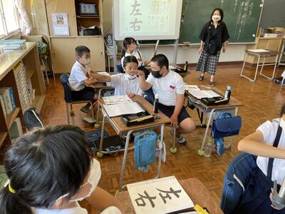 【4年生 No.45】筆順に気をつけて書こう! 投稿日時 : 2022/07/05 作成者1 毛筆では、「左右」を書きました。 とってもよく似た二文字ですが、横画と左はらいのどちらを先に書くかが違います。 ペアで筆順を確認しています。 筆順と画の長さに気をつけて書きました!