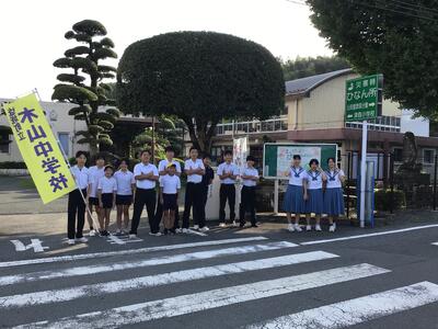 今日は、朝から木山中学校の生徒たちが挨拶運動に来てくれました。津森小の先輩たちの挨拶に少し圧倒されながらも、挨拶を交わし合う微笑ましい姿が見られていました。挨拶運動後に、中学生が一緒に遊んでくれて子どもたちも大喜び。木山中の皆さん、また、来月、会うのを楽しみにしています。
