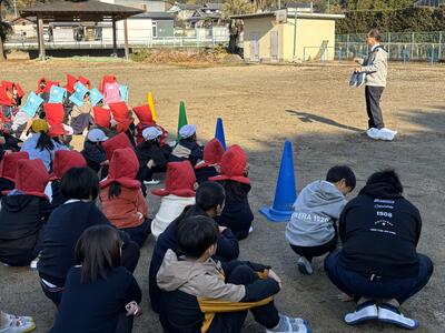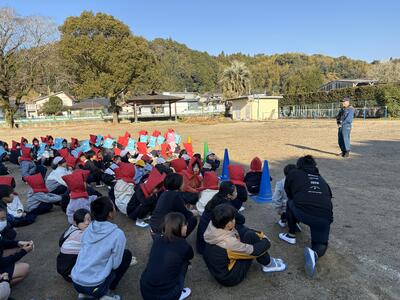 益城町役場の危機管理課や下水道課の方に学校にお越しいただき、マンホールトイレの仕組みや設置方法を学びました。