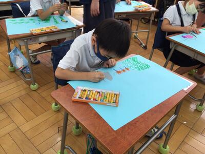図工では、津森のお気に入りの風景を絵に表しました。