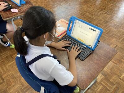 子ども達は、iPadでキーボードを使うことを楽しみにしており、タイピング練習に意欲的に取り組んでいます。