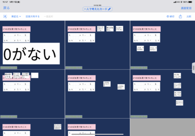 まず、二つの式を見比べて、それぞれ気づいたことをカードに書き込みました。