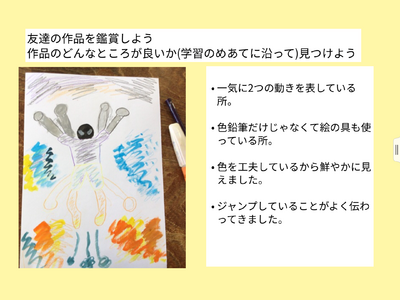 動きのおもしろさをとらえ、表し方を工夫しています。