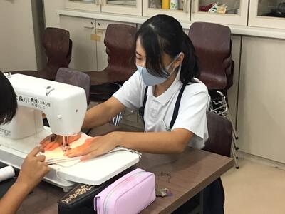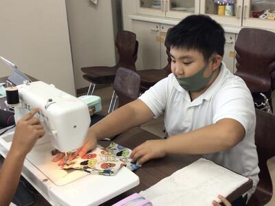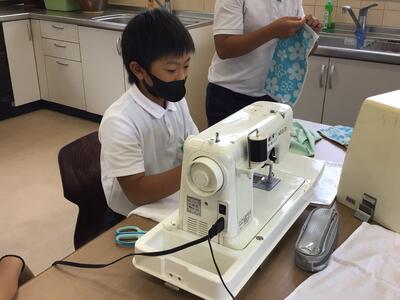 5年生、家庭科では単元計画を入れ替え、ミシン縫いの学習をしています。