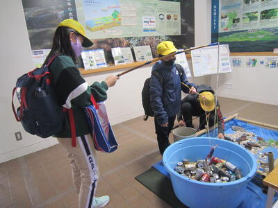 下の写真は、スチールとアルミを分別する体験です。磁石にくっつくかどうかで判別します。