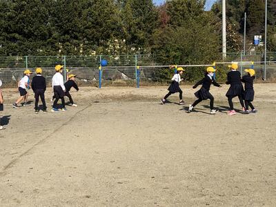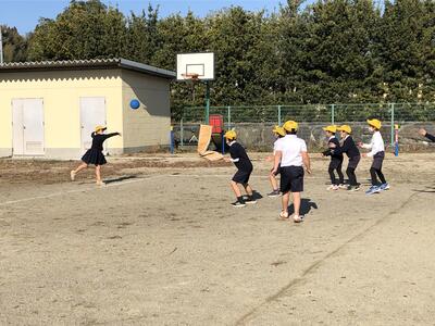 運動場で、だるまさんがころんだとドッジボールをしました。
