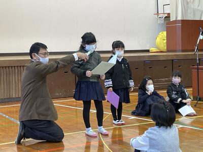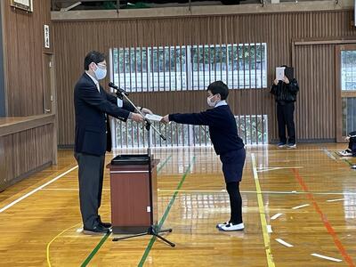 五年生の児童一名が陸上記録会の表彰を受けました。