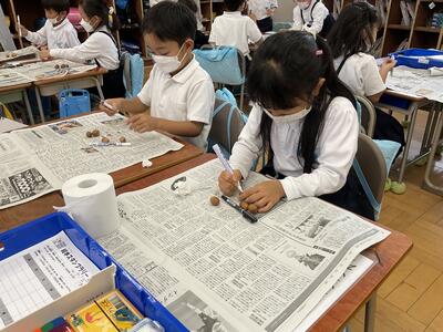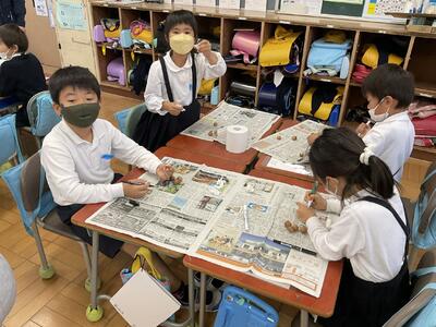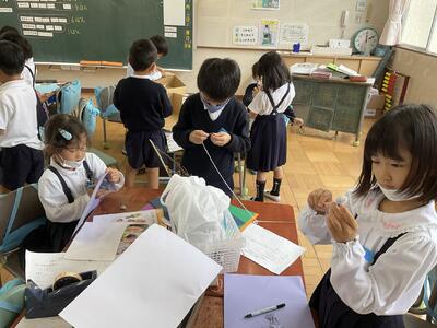 1年生は、現在、生活科の授業で、秋のおもちゃを作っています.