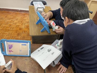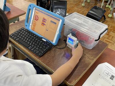 子どもたちは機械の動きを確認しながら、プログラムを修正していました。