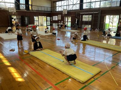 1年生は、今週から体育で「マット運動遊び」を行っています。