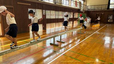 2学期序盤の体育は、遊びながらバランス感覚を鍛えたり、ボールになれたりする学習が続きます!