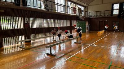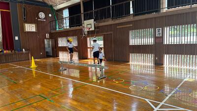 バランス系のサーキットトレーニングには、跳び箱などの場も作りました。