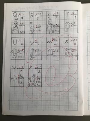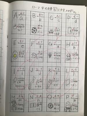 前日にアルファベットを書くテストをしました。