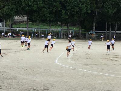 今日は、朝から久しぶりの雨でした。気温も下がり、少し肌寒い感じの1日でした。写真は今日の昼休みの校庭と、昨日、元気に外遊びをしていた様子の写真です。(昨日は外遊び解禁でした)