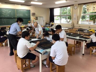 室町文化で学習した生け花に挑戦した6年生。ボランティアの方にアドバイスをいただきながら、見事に完成させました。出来上がった生け花は、校内の様々な場所に飾ってあり、見る人の心を癒してくれています。