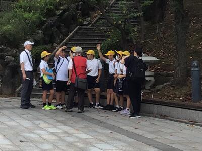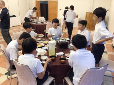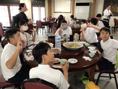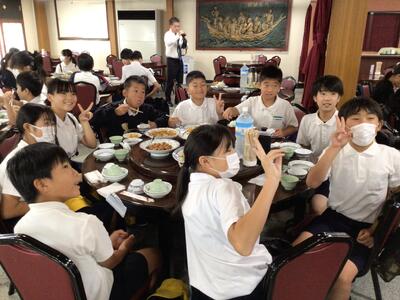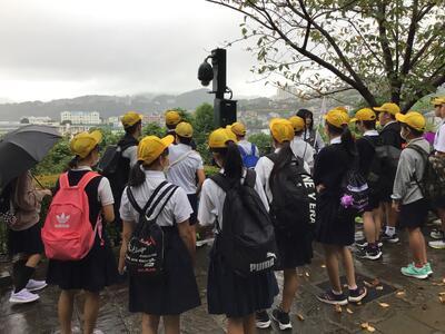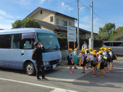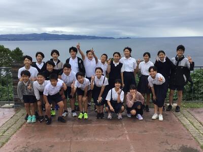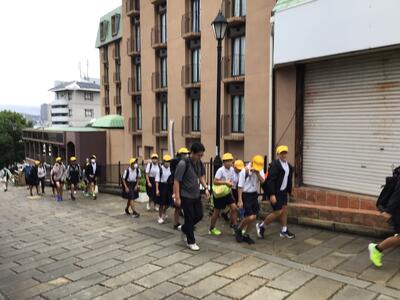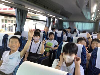 津森小6年生は、ホテルを出発し、2日目の活動が始まりました。みんな元気いっぱいです。