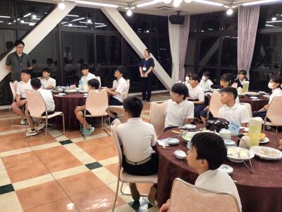 津森小学校修学旅行団、みんな元気に先程、午後5:45に稲佐山観光ホテルに入りました。