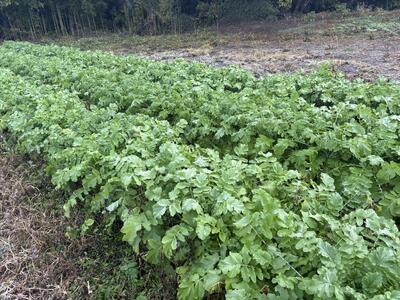 収穫を第三保育所の園児さんとしました。「おお,大きい。」「いっぱいなってる。」という歓声があがりました。