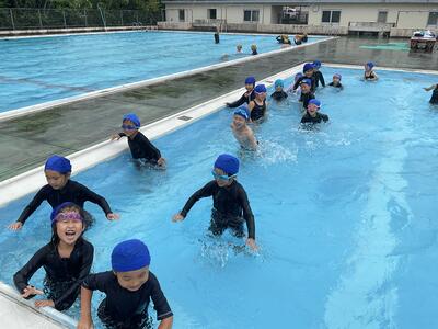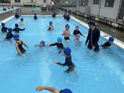 当日は、悪天候のため、中止の方向でしたが、体育の時間に奇跡的に雨がやみ、プール開きをすることができました.