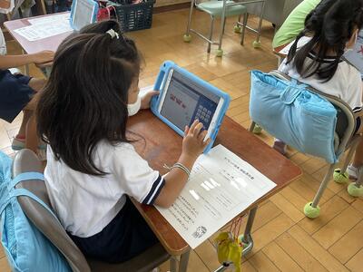 1年生は、学活の時間を使って、タブレット学習の指導をしました.