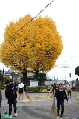 津森小学校には、校門近くに2本の立派な銀杏の木があります。