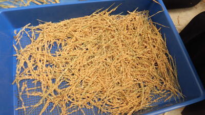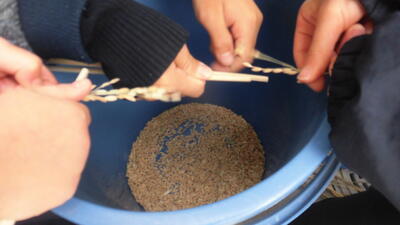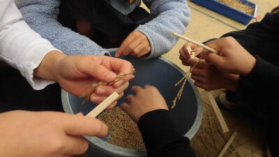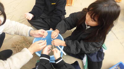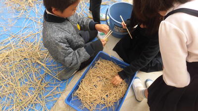 校内に作った田んぼでできたお米を刈り取ったのは、2年生。