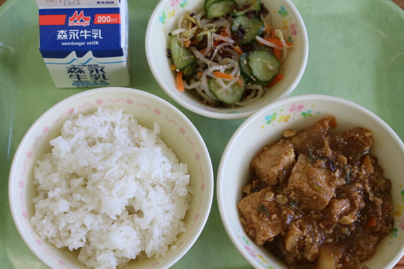 『麦ごはん・麻婆大根・中華和え・牛乳』です。