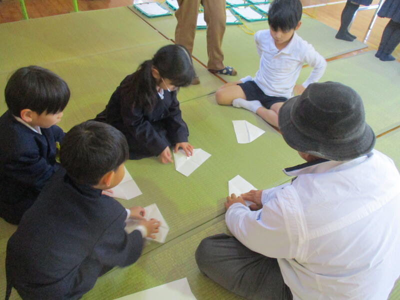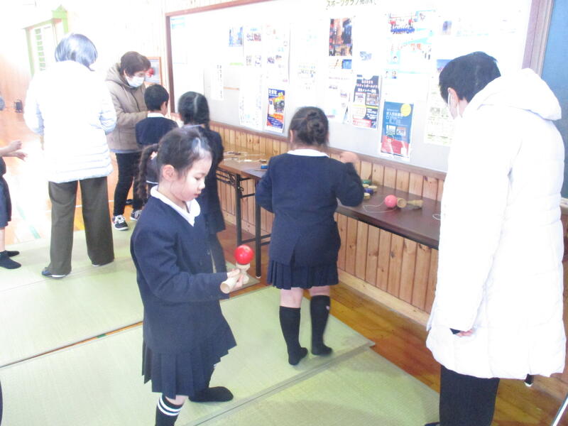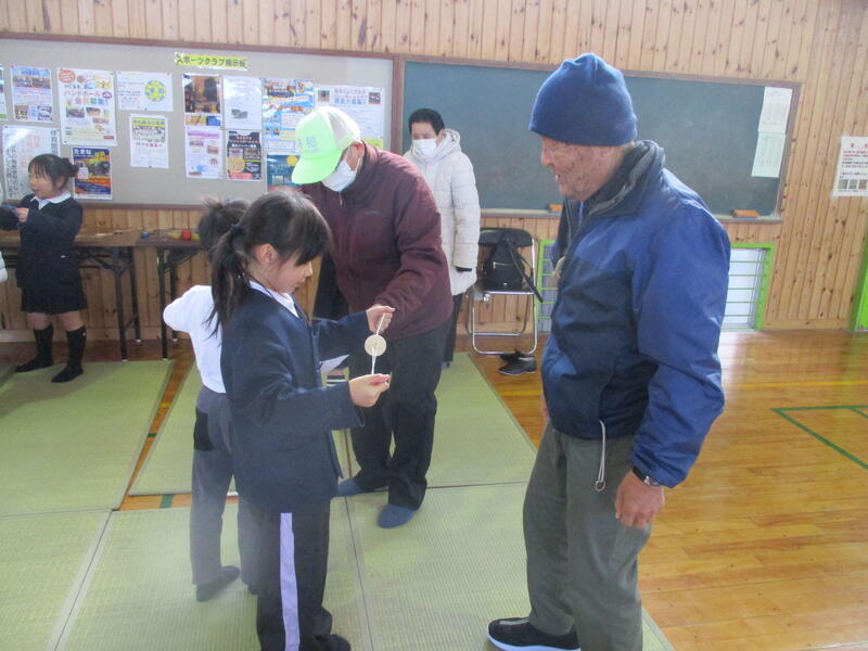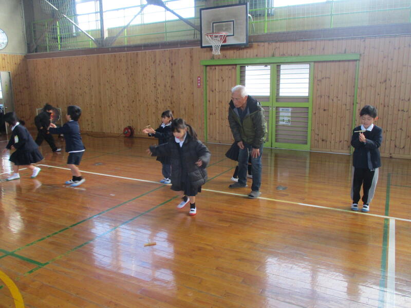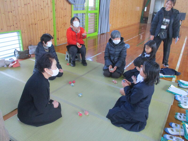 地域の方17名、ボランティアの方3名が来てくださり、あやとりや竹とんぼ、おはじき、お手玉などいろいろな昔遊びのやり方を教えてくださいました。1年生のみんなは、とても楽しそうに活動できました。終わった後は「楽しかった~」と言って大喜び!とても寒い中でしたが、たくさんの方に来てふれあっていただきました。ありがとうございました。