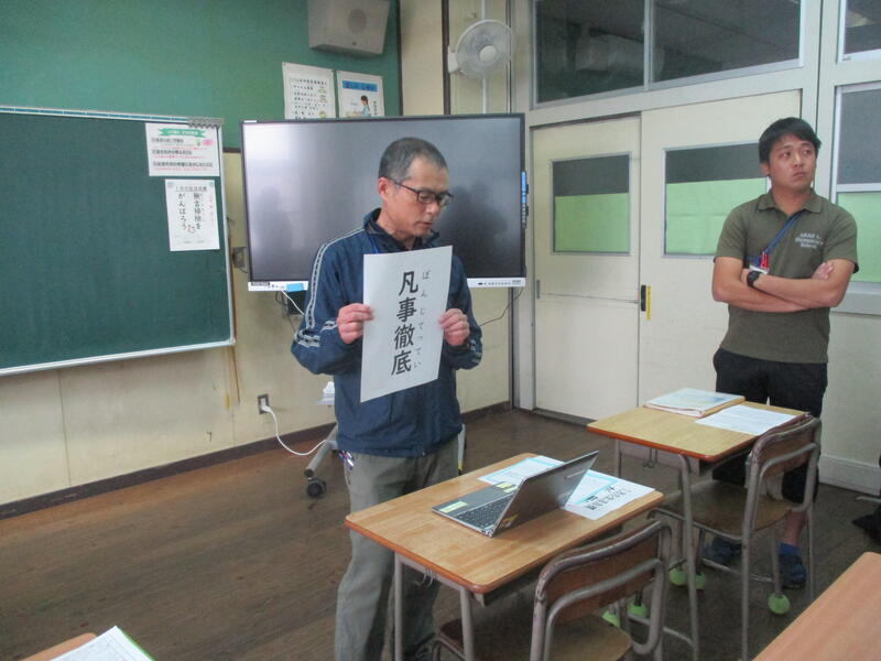 教頭先生からは、あいさつの話。山村先生からは無言掃除についてと「凡事徹底(当たり前のことを徹底して続ける)」についての話がありました。