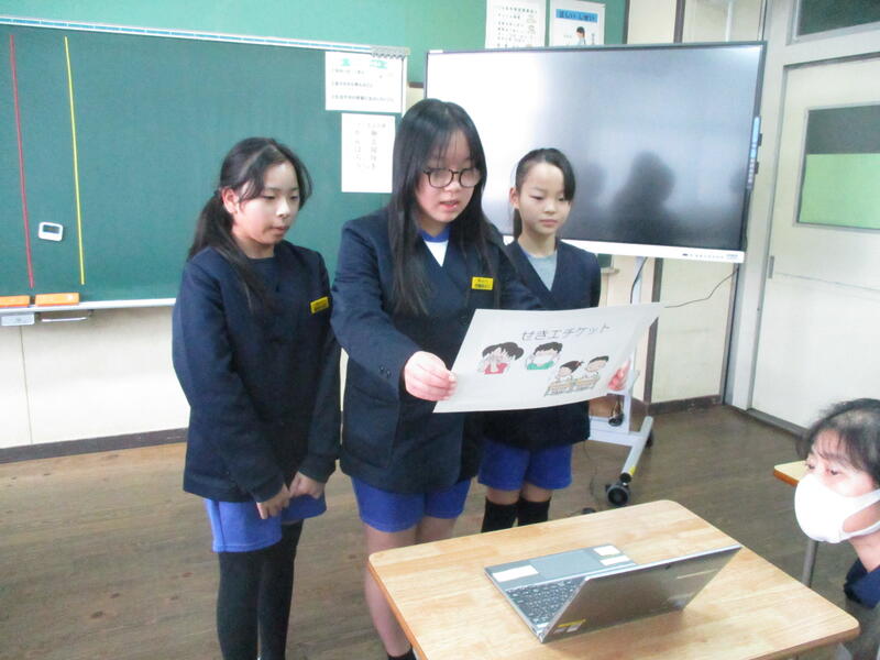 保健委員会からは、感染症の予防について。給食委員会からは、全国学校給食週間についてクイズにして発表してくれました。インフルエンザ等の感染症を予防し、おいしい給食をなるべく残さず食べてほしいと思います。