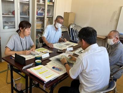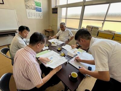 昨日の夜に集まり、バザー申し込みの集計、金額の確認をしていただきました。