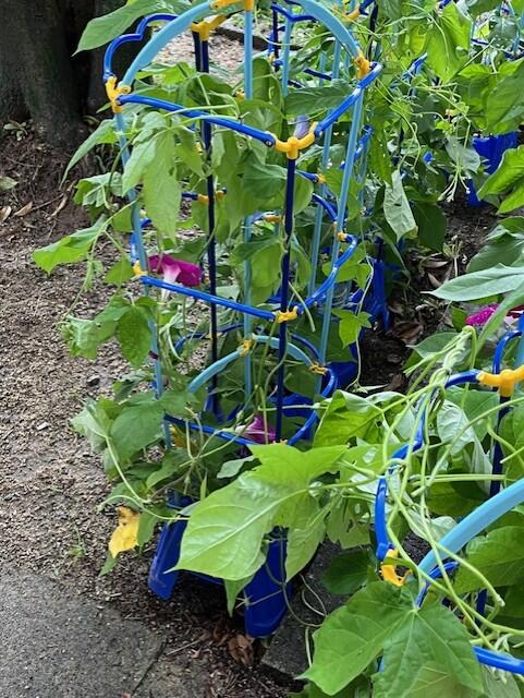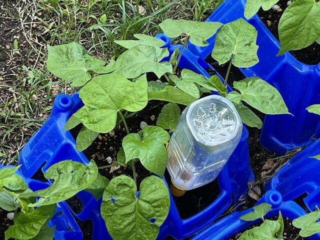ご覧のように、鉢にはそれぞれペットボトルが備え付けられていて、水分補給ができるようになっていますが、連日の晴天のため、子供たちは朝から念入りに水やりもがんばっています。