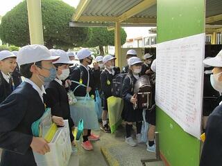 児童の皆さんは、新しい学年の靴箱や教室前に掲示してある名簿で、クラスを確認してください。