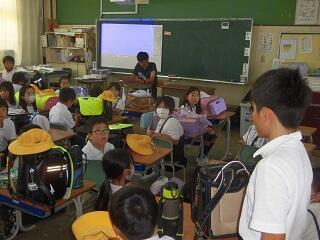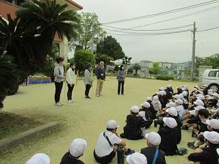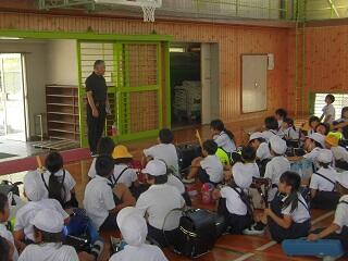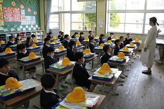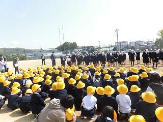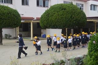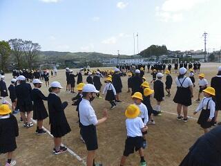 本日の地震避難訓練では、多くの児童が防災意識を持って運動場に真剣な表情で避難できました。また、地域の人々の生活を見守ったり1年生の下校指導をしてくださったりする民生委員の方々の紹介もしっかり聞くことができました。