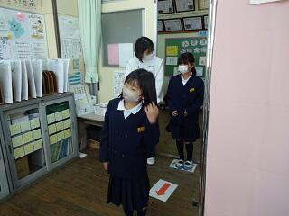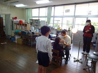 先週から各学年で行われている身体測定・視力検査、歯科検診の際に、九州看護福祉大学の大学生が来校しボランティアを行ってもらっています。保健に関する検診がスムーズに行くよう、積極的に活躍されました。